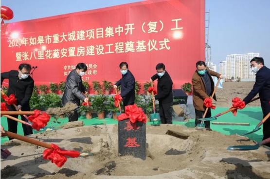 2月23日,2020年如皋市重大城建項目集中開(kāi)(復)工暨張八里花苑安置房建設工程奠基儀式在集團承建的張八里花苑項目現場(chǎng)隆重舉行。市領(lǐng)導張建華、何益軍、吳道健、張元健、丁興華、劉向陽(yáng)、史有根、茅紅宇、陳萬(wàn)圣、黃文斌、冒平出席活動(dòng),何益軍主持。集團總裁沈衛東、執行總裁章祥余、安全總監石祚國等參加。